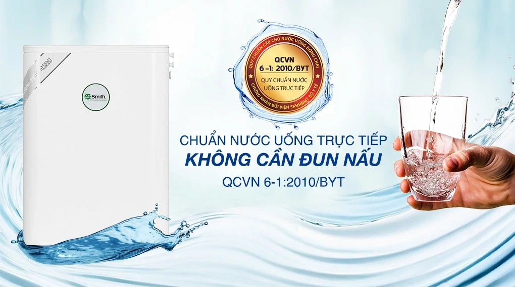 Máy lọc nước AOSmith S400 được chứng nhận đạt tiêu chuẩn nước uống trực tiếp QCVN 6-1:2010/BYT của Bộ Y tế, đảm bảo rằng nước sau khi lọc an toàn tuyệt đối, người dùng có thể sử dụng trực tiếp mà không cần đun sôi, mang lại sự tiện lợi và an tâm cho người sử dụng.