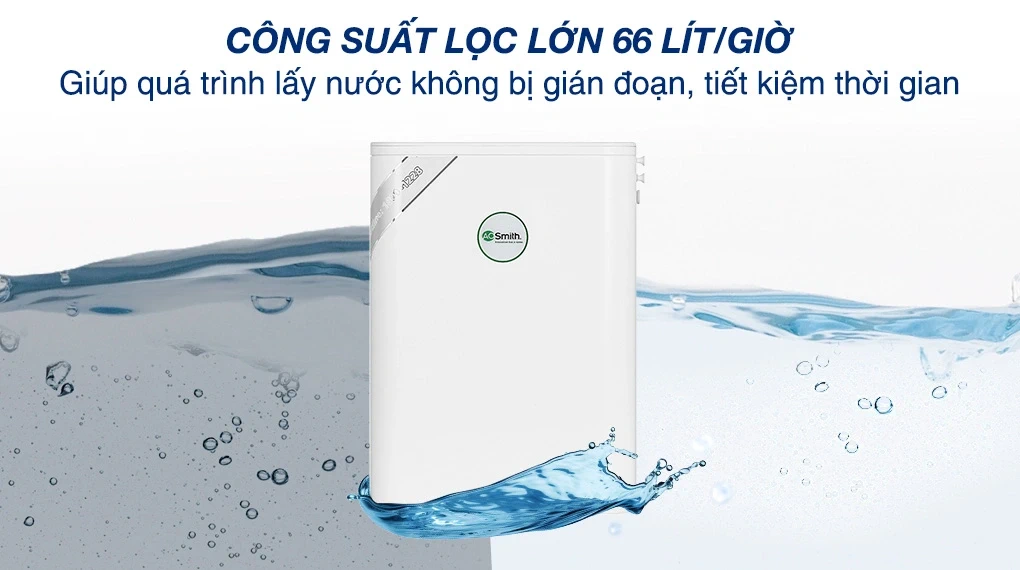 - Công suất lọc lớn: Đạt 66 lít/giờ, đảm bảo cung cấp đủ nước sạch cho gia đình.