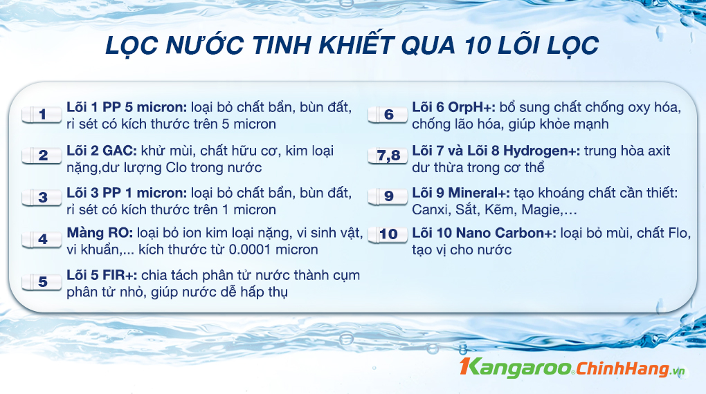 | Số cấp lọc | 10 lõi lọc |